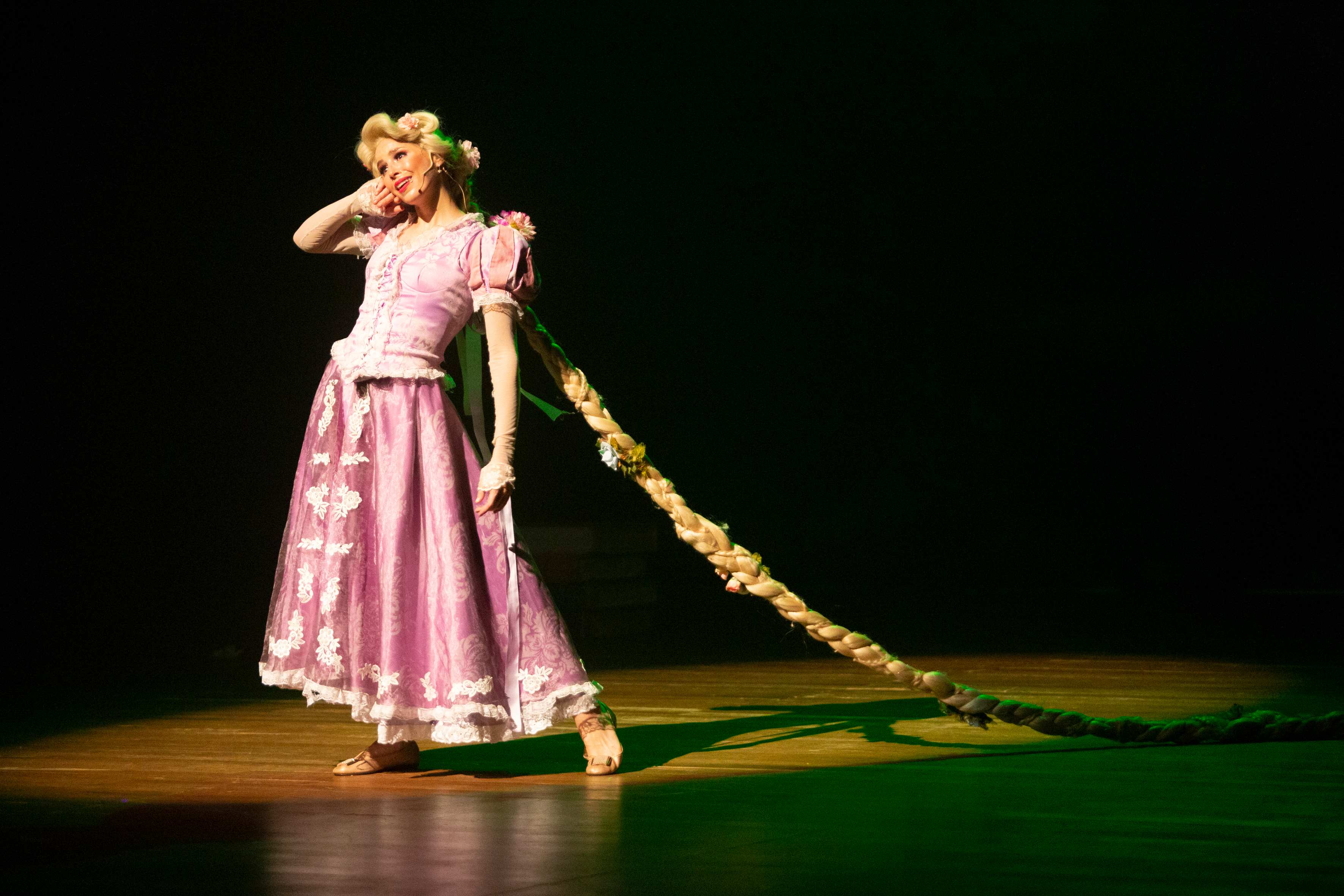 Em cena, além de Elsa e Anna, estão Kristoff e sua rena Sven, Olaf e o Príncipe Hans. Mais de 20 metros de trança contam a história de “Rapunzel”, no dia 20, domingo.
