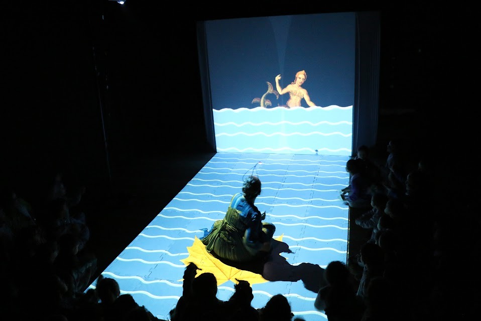 #Mergulho é uma obra intimista voltada especialmente para crianças de 1 a 6 anos de idade, que conta a história de duas pessoas que vivem em universos diferentes, ele na terra e ela no mar, e que buscam, com a ajuda da plateia, se encontrar. Utiliza como ferramenta técnica a projeção digital aplicada ao chão, um meio que viabiliza uma linguagem sensorial e imagética e que permite uma série de possibilidades de relação entre cena e plateia, entre imagem e os sentidos do espectador.