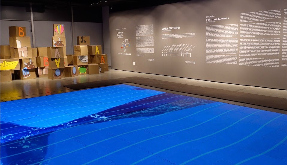 A exposição “O Céu, o Mar e a Palavra” convida o público a mergulhar no universo criativo do Eranos Círculo de Arte. A mostra integra a pesquisa do grupo sobre brinquedos não estruturados e tecnologia digital, criando um ambiente que estimula o brincar compartilhado através do encontro com personagens, criaturas e sonoridades inspiradas em suas produções teatrais voltadas para as infâncias.