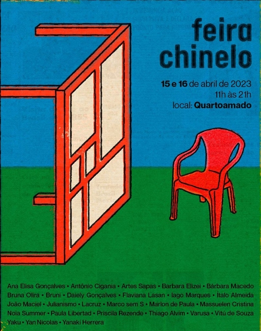 Chinelo é confortável, acessível e bem brasileiro - a iniciativa que antes chamava-se Feira de Arte Traços passou pelo Teatro Espanca e Virada Cultural de BH. É uma feira autogestionada por artistas com o fim de propiciar visibilidade, retorno financeiro e o fortalecimento da cena das artes e das(es)(os) artistas visuais dessa linda BH! A feira acontece no Quarto Amado- galeria e agência de arte criada em 2012 com o objetivo de comunicar e articular o trabalho de artistas mineiros, sendo local importante na trajetória de diversos artistas da cidade.
