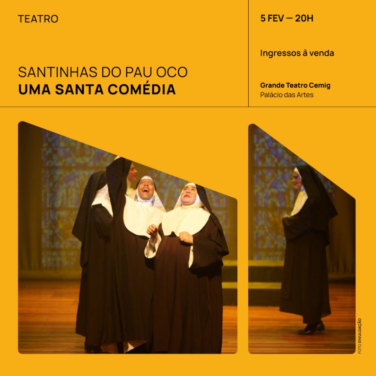 Sucesso de público, a comédia “As santinhas do pau oco” conta a história de jovens freirinhas que, enclausuradas num convento, vivem sob as rígidas regras da madre superiora. As noviças tentam realizar, cada qual a seu modo, seus objetivos pessoais de alegria. Usando estratégias cômicas e até inocentes, criam formas de ludibriar a superiora, vivenciando seus sonhos, podendo até mesmo cantar na Broadway e mostrando que nem tudo é pecado. Pecado mesmo é deixar de assistir a este espetáculo.