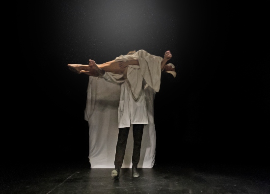 A cena nasce de improvisações teatrais realizadas durante o isolamento social, interrogando os efeitos do confinamento, da exclusão e do distanciamento físico.