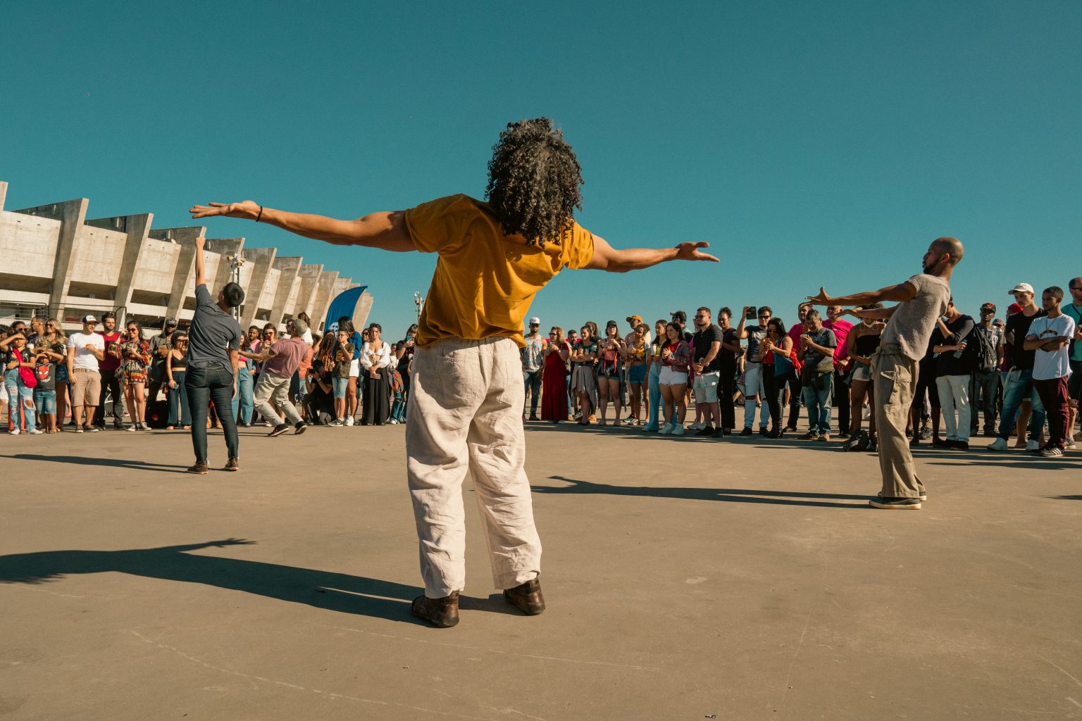 O espetáculo “Verga” se enverga em movimento contínuo de fusão do conhecimento e da ação, do profano e do sagrado, do feminino e do masculino, da luta e da dança. O trabalho transita entre a resistência e a liberdade, onde resistir não significa apenas reagir, mas também criar. Para discutir essas questões, o grupo se apoia nas linguagens que vem investigando, principalmente a capoeira.