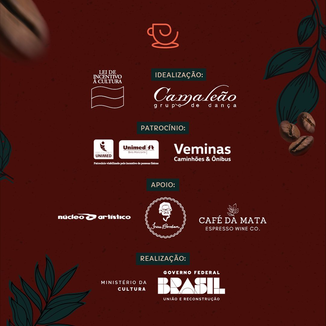 O projeto Café com Camaleão é realizado com recursos da Lei Federal de Incentivo à Cultura e conta com patrocínio da Unimed-BH por meio do Instituto Cultural Unimed e da Veminas.