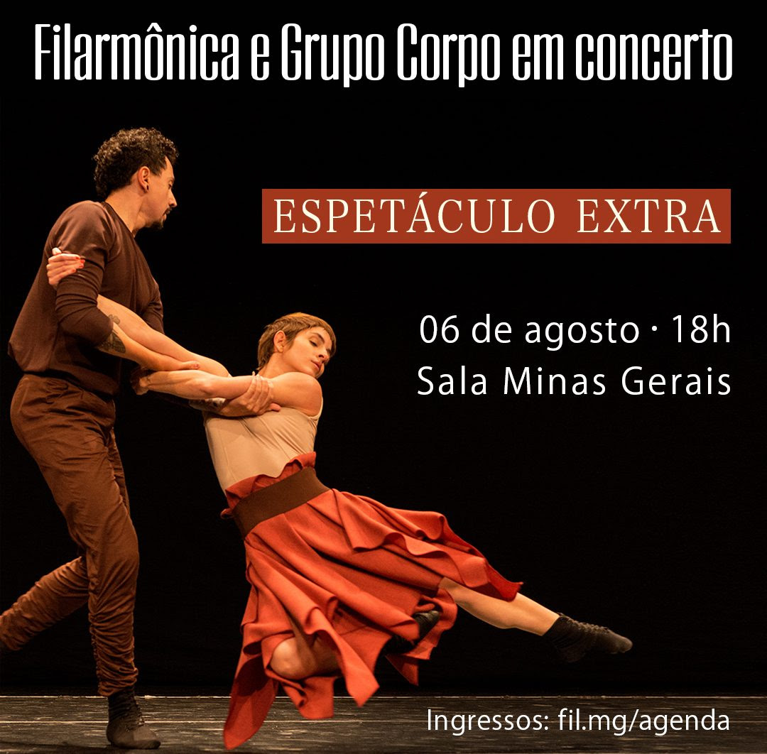 Nos dias 3, 4, 5 e 6 de agosto, o Grupo Corpo e a Filarmônica de Minas Gerais se encontram pela primeira vez no palco da Sala Minas Gerais e fazem a estreia brasileira do balé Estancia, do compositor argentino Alberto Ginastera, sob a batuta do maestro Fabio Mechetti, Diretor Artístico e Regente Titular da Filarmônica de Minas Gerais.