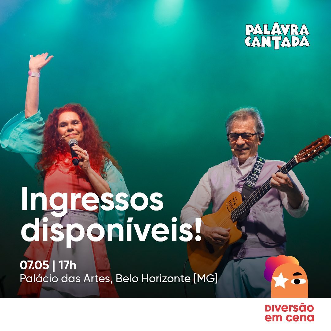 No dia 7 de maio, domingo, a partir das 17h, no Grande Teatro do Palácio das Artes, a Palavra Cantada (SP) sobe ao palco para apresentar ao público mineiro o espetáculo Vem Cantar com a Gente, show com diferentes momentos para crianças e adultos cantarem e reviverem as principais canções do duo.