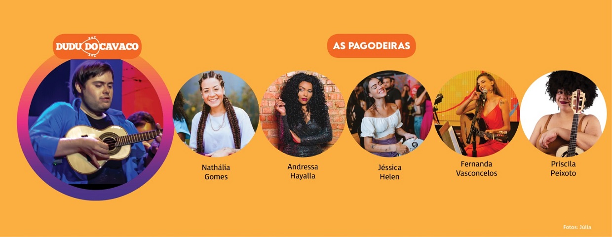 Com o grupo “As pagodeiras”, quinteto formado por Andressa Hayalla (cantora), Fernanda Vasconcelos (violão e backing), Nathy Sarará (tantan), Priscila Peixoto (cavaquinho e banjo) e Jéssica Helen (pandeiro), o show terá leveza e muita alegria.