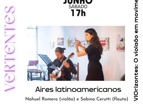 No sábado, dia 22 de junho, às 17h, o Conservatório recebe o concerto "Aires Latinoamericanos", com o violonista Nahuel Romero e a flautista Sabina Cerutti. O concerto busca a interação de músicas latinoamericanas através de um percurso pelos ares do romantismo paraguaio de Barrios, os ares venezuelanos do neoclassicismo de Lauro, os “buenos aires” entrelaçados de flauta e violão na Historia del tango de Astor Piazzolla e os ares contemporâneos de Bajda e Sol Marianetti. Das prosas musicais da cidade de Mendoza, expandindo-se a diversos mundos sonoros latinoamericanos. A entrada é gratuita e não é necessária a retirada de ingressos para a apresentação. Somente é recomendado a chegada com antecedência, pois o auditório está sujeito a lotação.