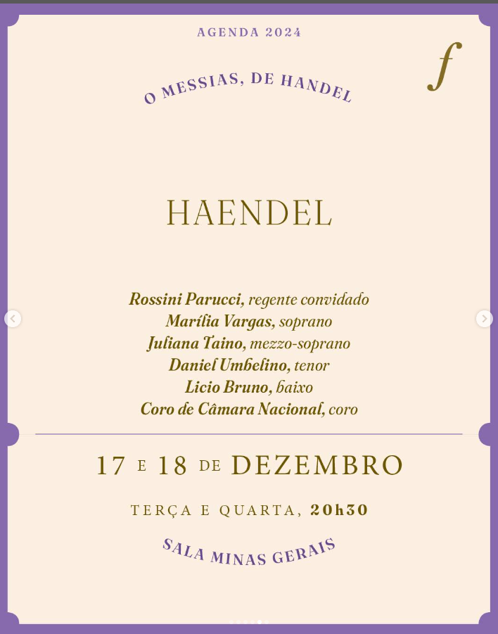 E para encerrar 2024 com muita paz e harmonia, a Filarmônica apresenta seu especial de fim de ano, “O Messias, de Haendel”, nos dias 17 e 18 de dezembro.