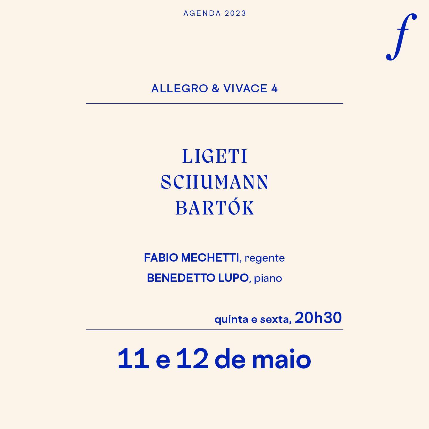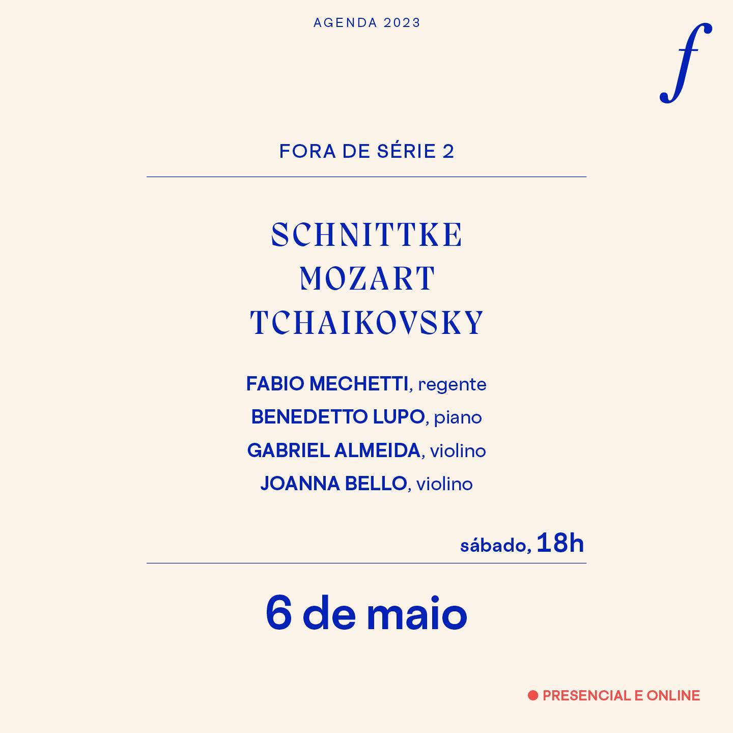 Mas, antes disso, no sábado, dia 6, e também nos dias 11 e 12 de maio, o pianista italiano Benedetto Lupo estará presente no palco da Filarmônica para interpretar o “Concerto para piano nº 3” de Mozart e o “Concerto para piano em lá menor” de Schumann. A apresentação do dia 6 de maio será transmitida ao vivo pelo canal da Filarmônica no YouTube e também pela rádio MEC FM.