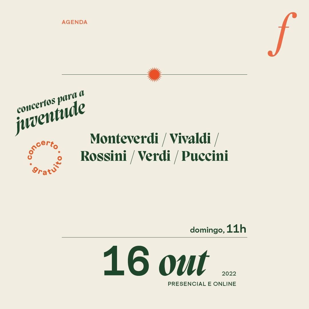 No terceiro domingo do mês, faremos mais um dos Concertos para a Juventude, que, desta vez, nos levará para a Itália, com repertório incluindo obras de Vivaldi, Verdi e Puccini.