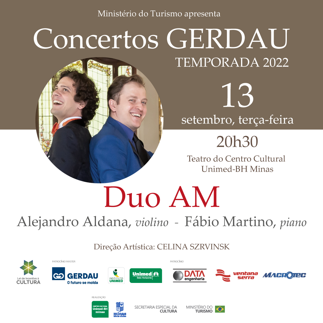 O Duo AM apresenta recital na série de Concertos Gerdau no dia 13/9, terça-feira, às 20h30.