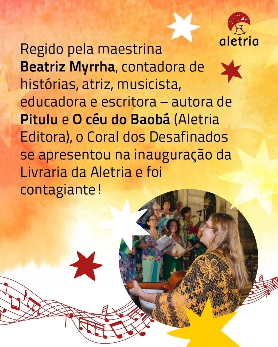 O Coral dos Desafinados reúne, adultos sem qualquer formação musical pregressa – mas que, juntos, aprenderam a cantar lindamente. É composto no momento por um total de 56 pessoas e 36 delas se apresentarão na Livraria da Aletria no sábado, às 10h.