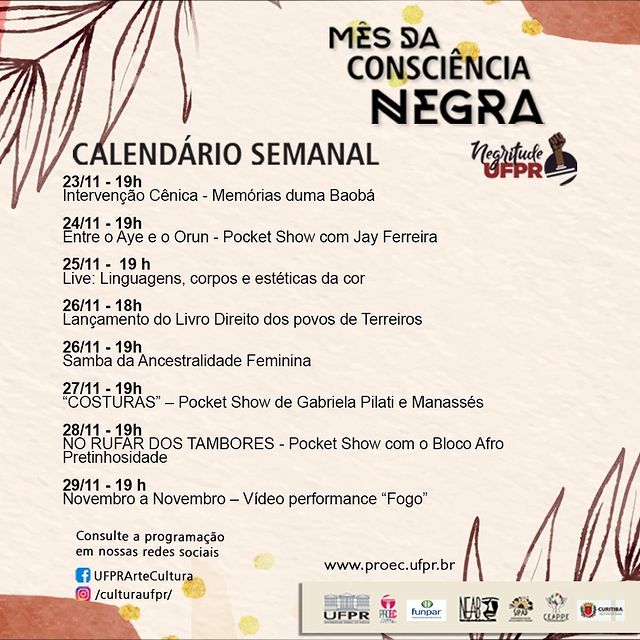 O duo da integra a programação do mês da Consciência Negra da Universidade Federal do Paraná. COSTURAS é um espetáculo lítero-musical, onde a poesia e a música se entrelaçam num amálgama perfeito pelo equilíbrio entre o tema versado pelo texto e conversado pela música.