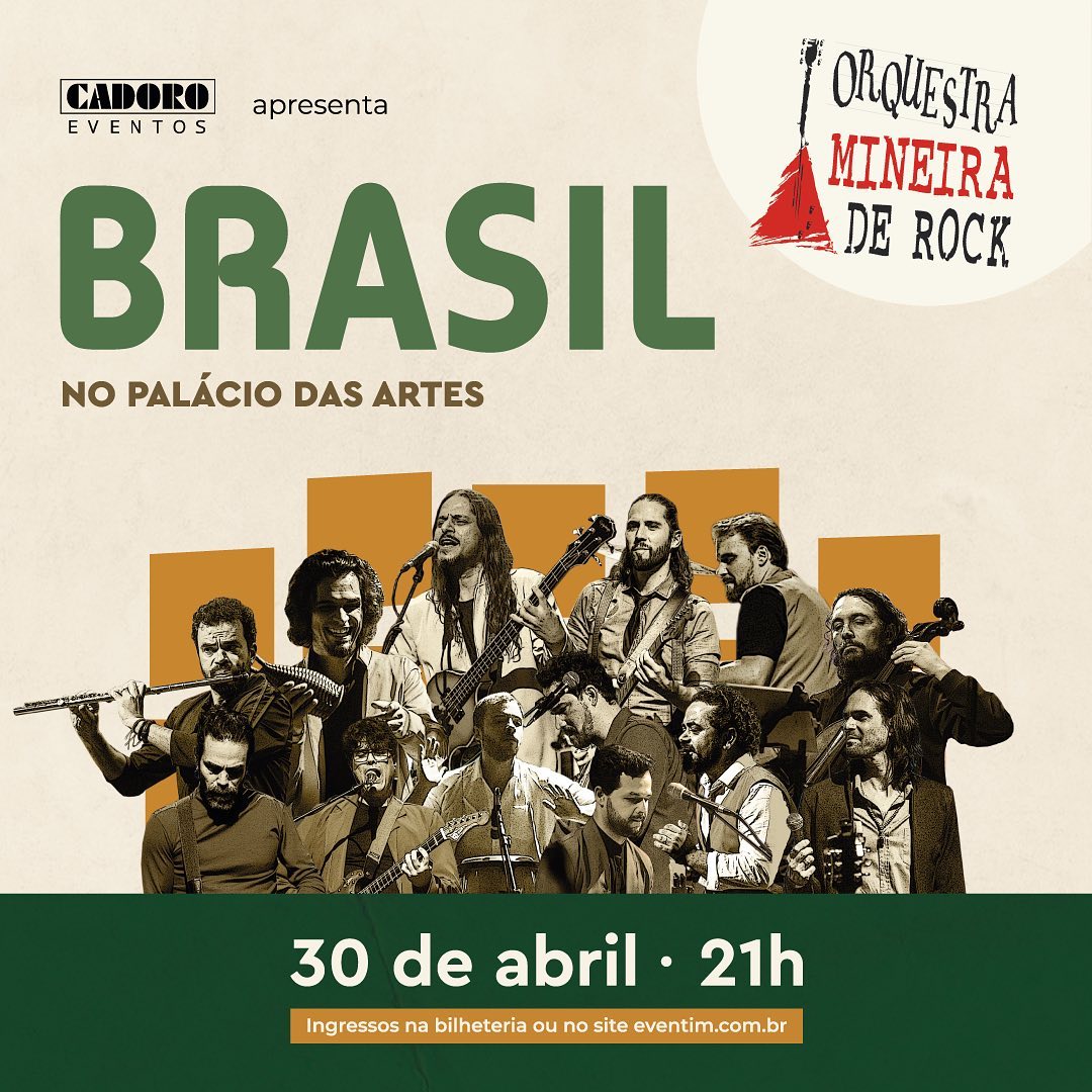 A Orquestra Mineira de Rock comemora o reencontro com o público em um show muito especial no dia 30 de abril, no Palácio das Artes. “Brasil” traz um panorama da música feita em nosso país, com arranjos originais e inusitados – característica já marcante da OMR. “Estamos muito felizes com esse reencontro e muito ansiosos.