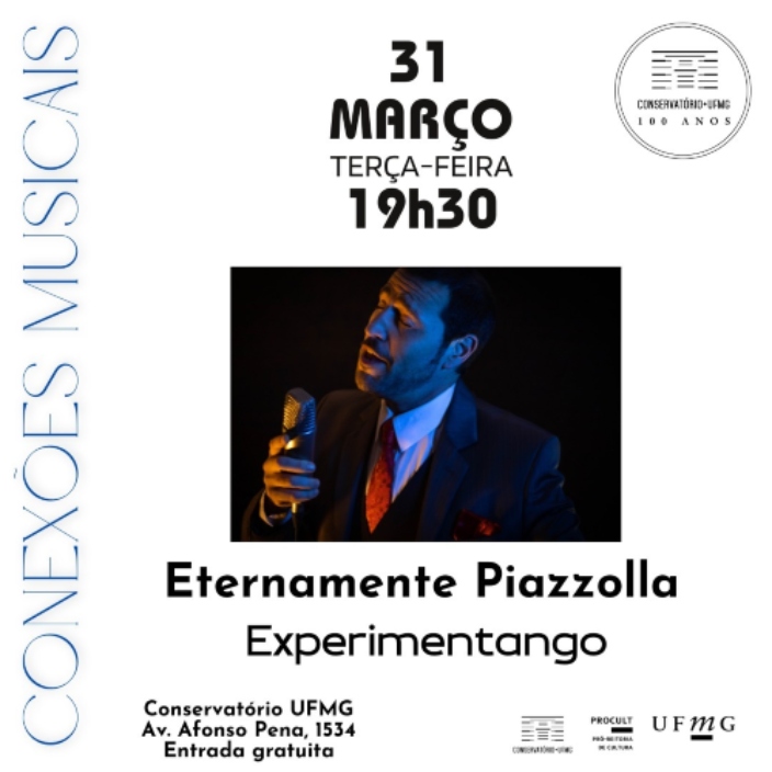O Conservatório da UFMG recebe o projeto Experimentango, no dia 31 de março, terça - feira, às 19h30. Idealizado e apresentado pelo cantor Dante Alessandro, em uma noite dedicada à força e à reinvenção do tango contemporâneo. Inspirado na obra de Astor Piazzolla, o concerto propõe uma travessia pelas sonoridades do Nuevo Tango, entre tradição e ruptura.