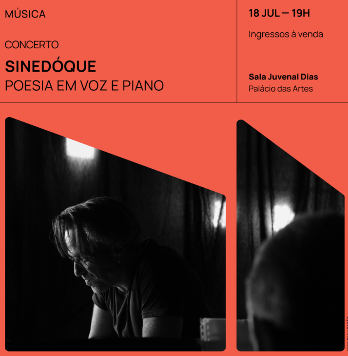 Inspirado na figura de linguagem que expressa “a parte pelo todo” ou “o todo pela parte”, o espetáculo Sinédoque propõe uma experiência sensorial e poética ao revisitar e reinventar obras de renomados poetas portugueses dos séculos XX e XXI, como Alexandre O’Neill, Ruy Belo, Tiago Rodrigues e Margarida Vale de Gato.