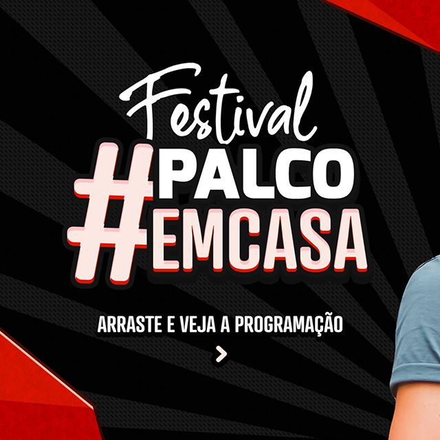 O Festival #PalcoEmCasa será transmitido via stories, aqui no Instagram, a partir de meio-dia.