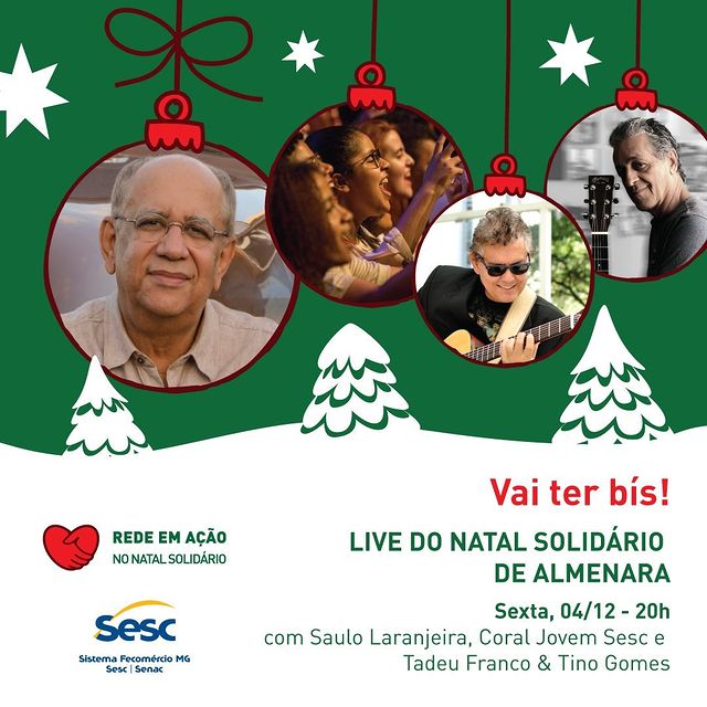 Nesta sexta-feira, dia 04/12, o Youtube do Sesc em Minas irá exibir mais uma live da campanha Natal Solidário 2020, em prol de centenas de famílias que vivem em situação de vulnerabilidade social, em Almenara (MG) e região.
