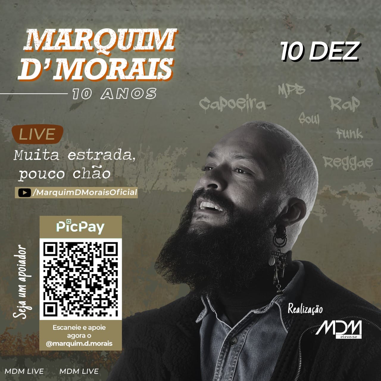 No dia 10 de dezembro, Marquim D'Morais vai comemorar 10 anos de carreira solo. Por isso, ele vai fazer uma live/show apresentando o trabalho atual, músicas de trabalhos passados e também as músicas do disco novo.