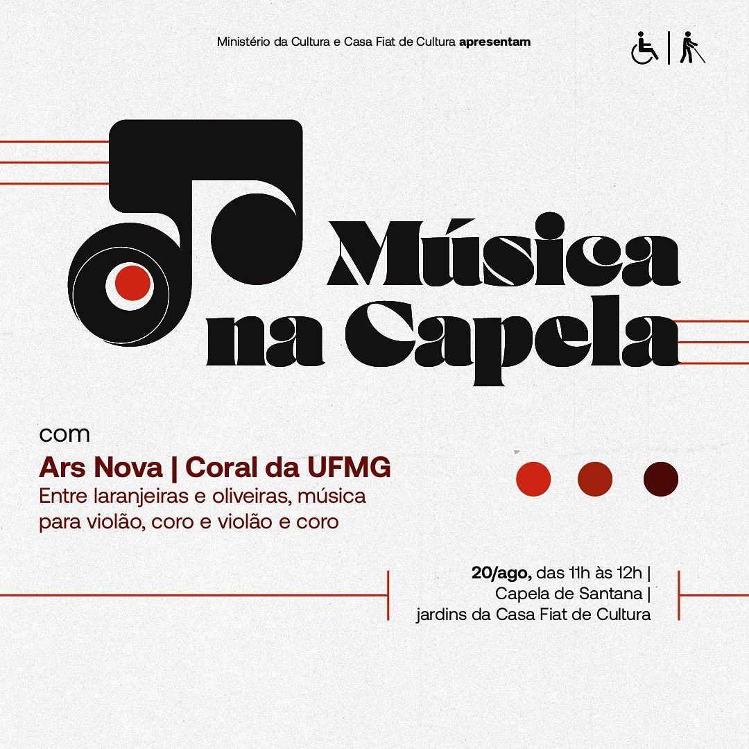 O evento acontece na Capela de Santana, nos jardins da Casa Fiat de Cultura, com entrada gratuita e está sujeito à lotação do espaço (80 lugares).