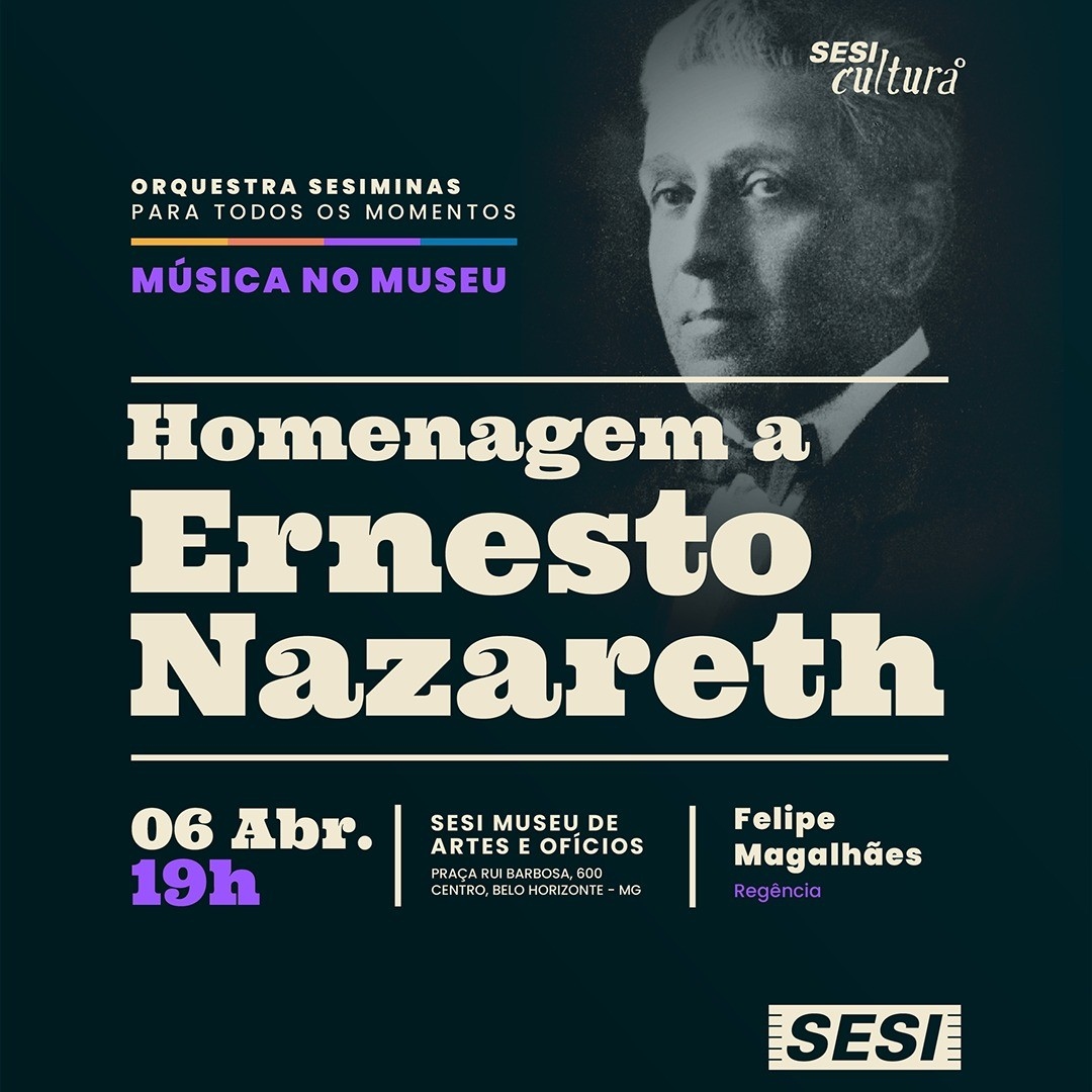 Abrindo a nova série Música no Museu, o concerto celebra os 160 anos de nascimento de um dos mais importantes compositores brasileiros, cuja obra se encontra no limite entre o erudito e o popular. Compositor de choros, valsas e polcas, além de outros gêneros, Nazareth é dono de uma obra original que será homenageada com transcrições para orquestra de algumas de suas mais célebres composições, juntamente com obras de outros compositores que guardam alguma relação com a estética de Ernesto Nazareth, ou que ajudam a ilustrar sua época e suas influências.