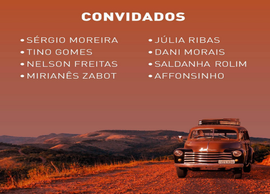 Sempre com a presença de grandes convidados, a gravação deste mês conta com as participações de Sérgio Moreira, Tino Gomes, Nelson Freitas, Mirianês Zabot, Júlia Ribas, Dani Morais, Saldanha Rolim e Affonsinho.