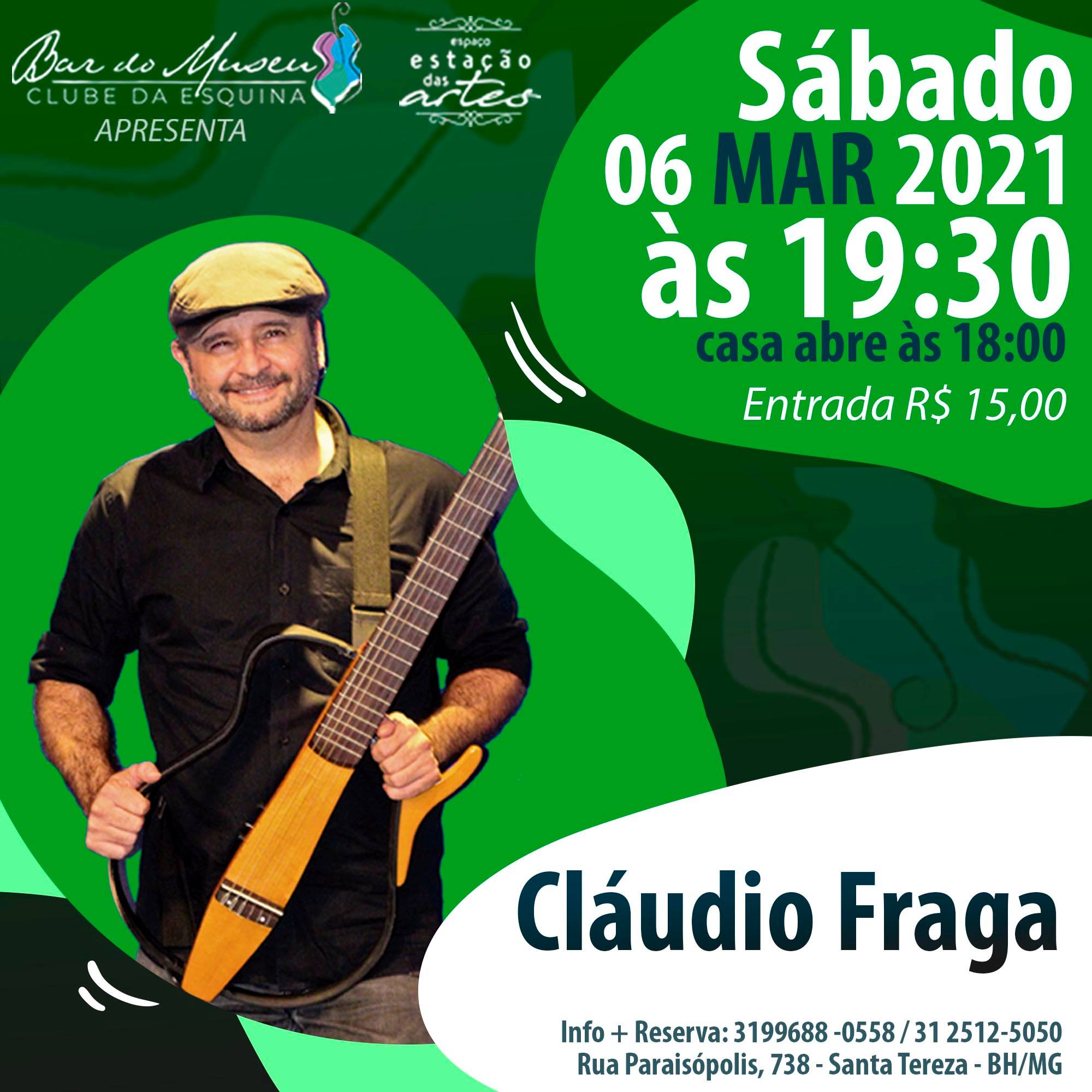 06/03, às 19h30: Show com Cláudio Fraga