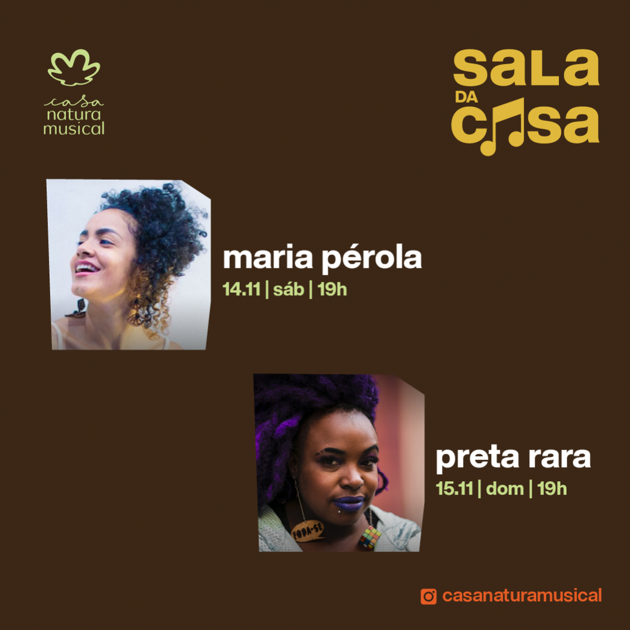 A partir de 7 de novembro, a programação celebra o Mês da Consciência Negra e a Sala da Casa traz para seu palco virtual, destaques da música negra contemporânea. Os artistas escolhidos para celebrar o mês são: Hiran (7/11), que lançou recentemente o álbum Galinheiro; a cantora e compositora Lei Di Dai (8/11), um dos ícones do Jungle/D&B (Drum & Bass) brasileiro; a cantora e atriz pernambucana Maria Pérola (14/11), a rapper, historiadora e escritora Preta Rara (15/11); a cantora, compositora e atriz Khrystal (21/11), que foi uma das intérpretes de Elza Soares no teatro; o músico mineiro Rafael Salles (22/11), integrante do Coletivo IMuNe e do bloco de carnaval belo-horizontino Pena de Pavão de Krishna; a cantora amazonense Thais Badu (28/11), que no ano passado foi contemplada pelo edital da Natura Musical, e Mestrinho (29/11), cantor, compositor e acordeonista que já se apresentou ao lado de ícones da música brasileira, com Dominguinhos, Gilberto Gil e Elba Ramalho.