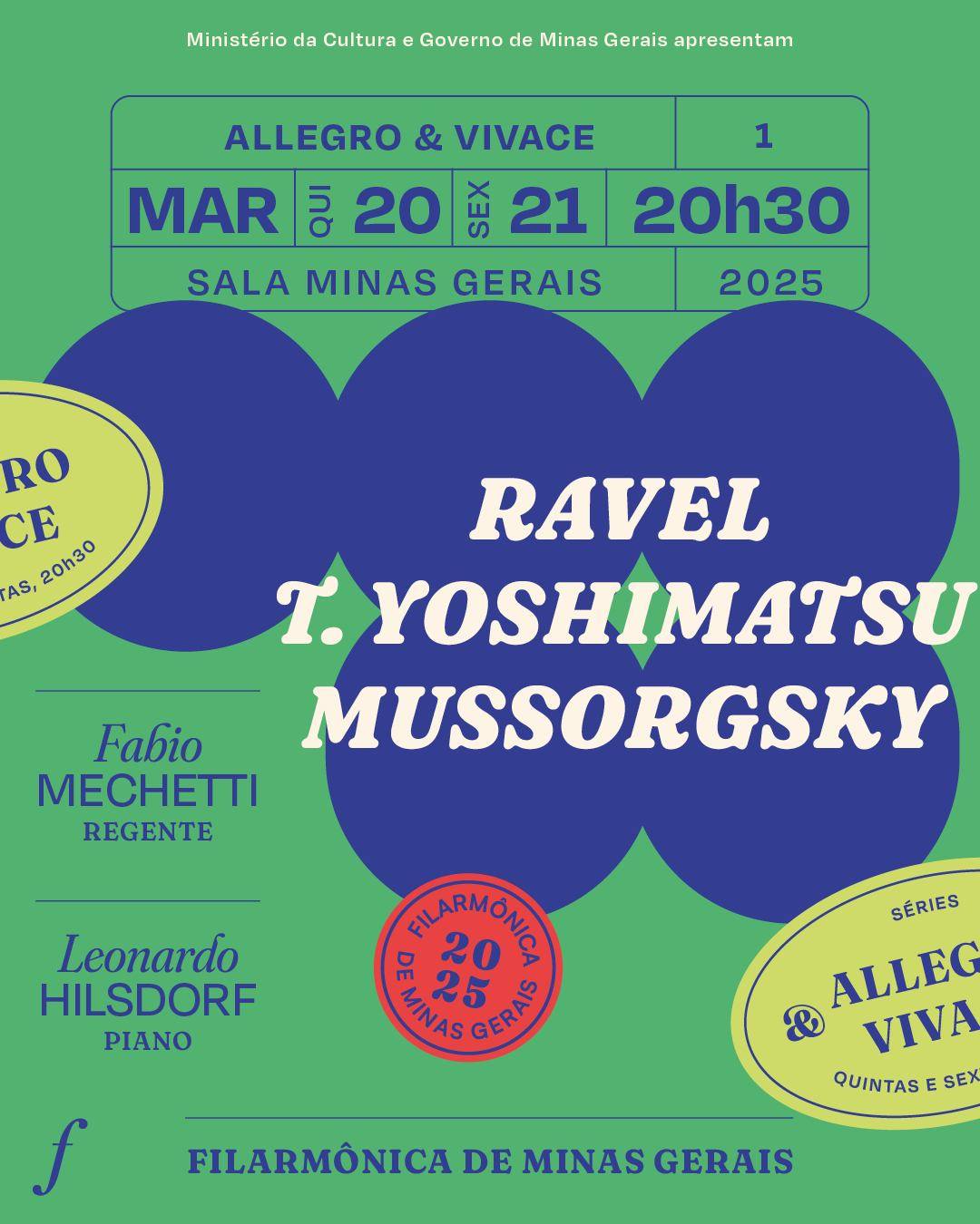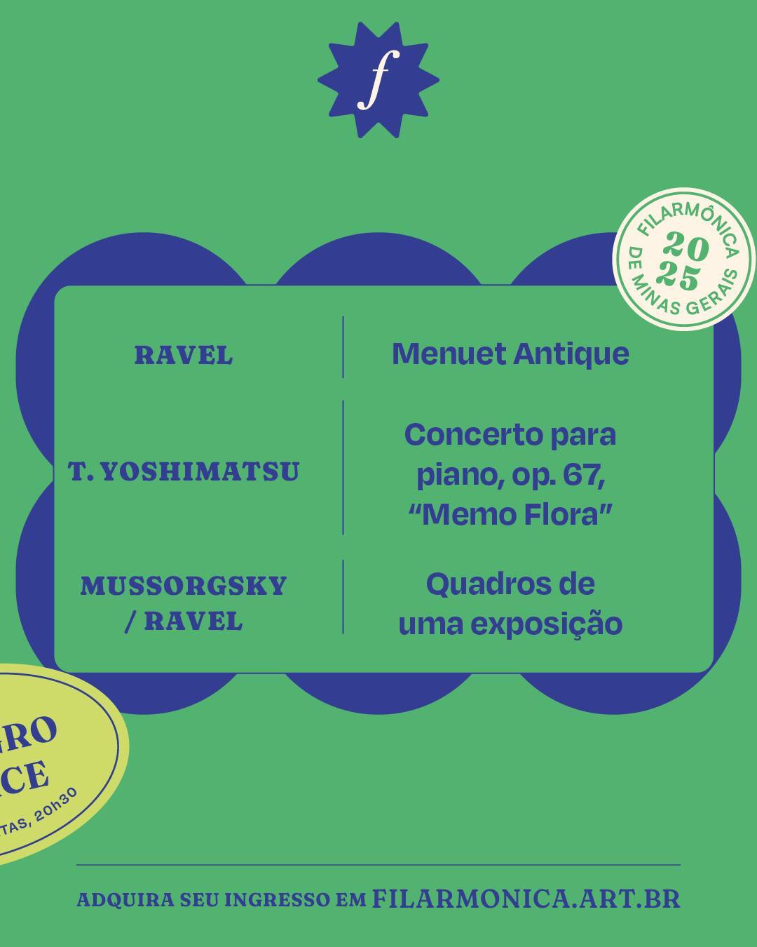 Para completar o repertório da noite, o evento terá ainda Ravel em dose dupla, com sua obra "Menuet Antique", e "Quadros de uma exposição", composição de Mussorgsky originalmente para piano que foi orquestrada por Ravel em 1922.