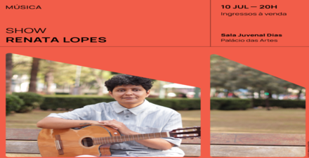 A cantora e compositora Renata Lopes realiza, no dia 10 de julho, às 20h, um show autoral na Sala Juvenal Dias, no Palácio das Artes, em Belo Horizonte.