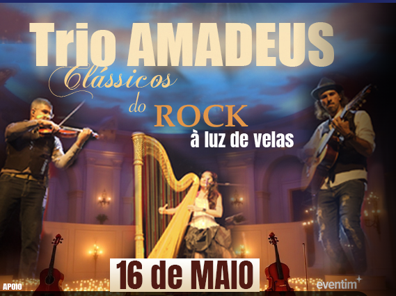 Neste show intimista e exclusivo, o Trio Amadeus promete uma experiência única ao interpretar, com arranjos especiais, os clássicos do rock na harpa, violão e violino.