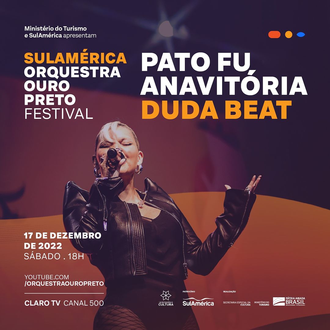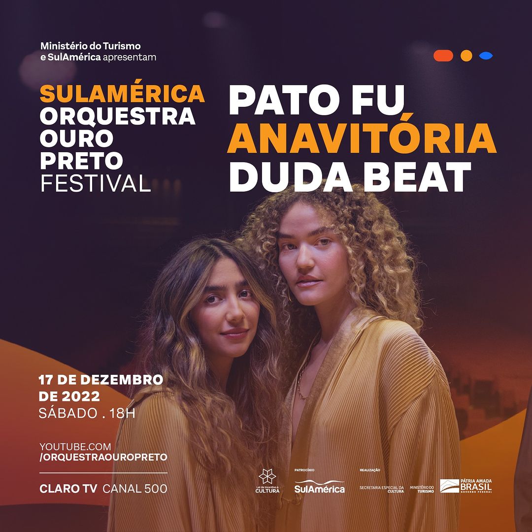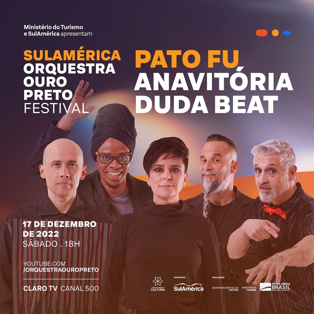 Excelência e versatilidade são as marcas registradas da Orquestra Ouro Preto. Essas características ficam ainda mais evidentes quando reunidos três projetos musicais com artistas tão singulares como propõe o SulAmérica Orquestra Ouro Preto Festival. Serão mais de três horas ininterruptas de música na exibição dos encontros da formação mineira com a banda Pato Fu, a dupla Anavitória e Duda Beat, respectivamente.