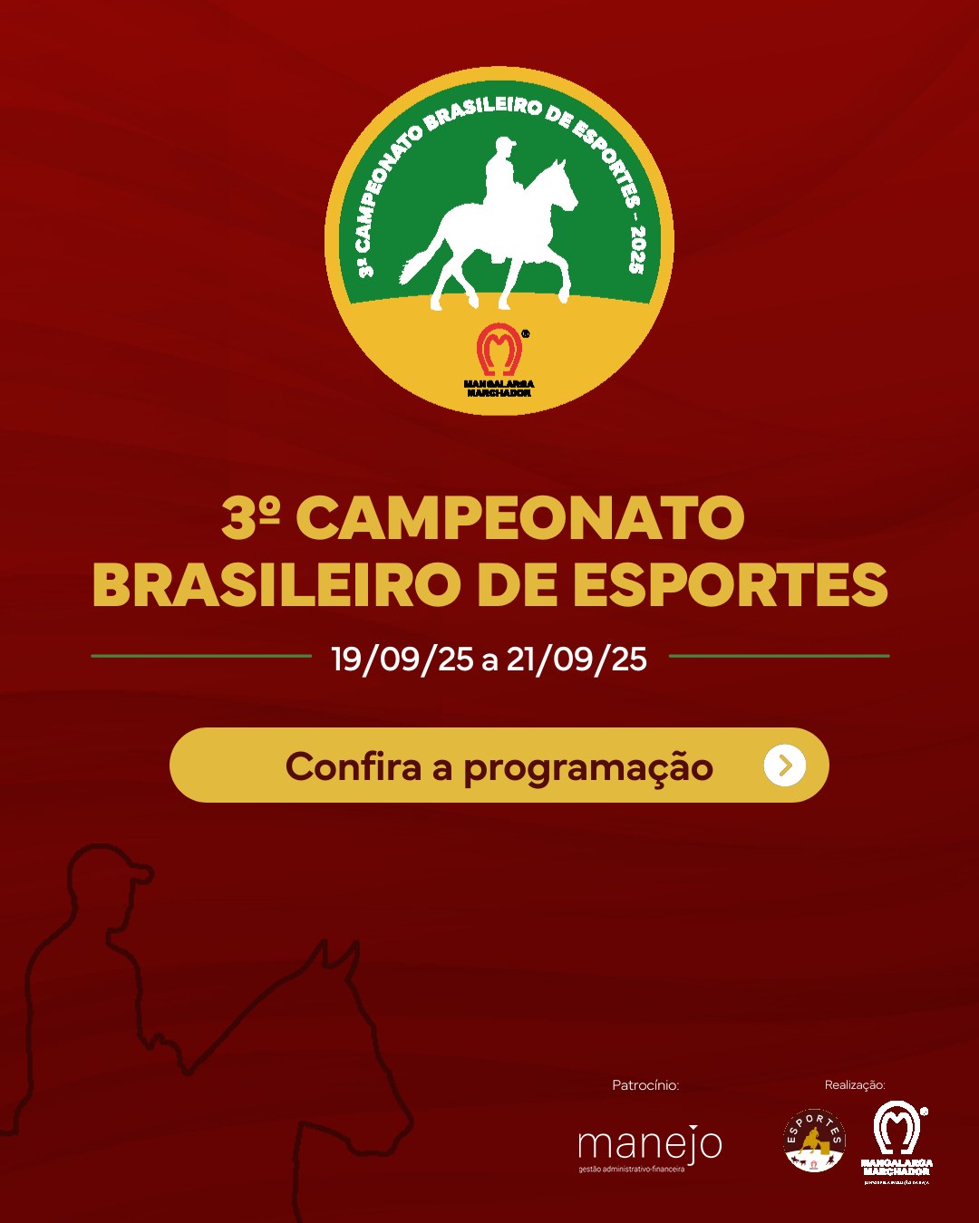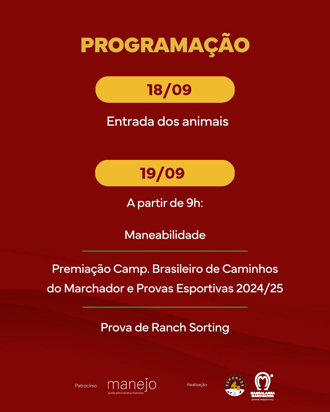 Entre 19 a 21 de setembro, acontece o Campeonato Brasileiro de Esportes com Mangalarga Marchador e o Na Brasa BBQ, dia 20, estarão de volta ao Parque de Exposições da Gameleira. A programação vai reunir em um só lugar a adrenalina das provas esportivas, boa gastronomia e entretenimento. Sexta e domingo, entrada gratuita.