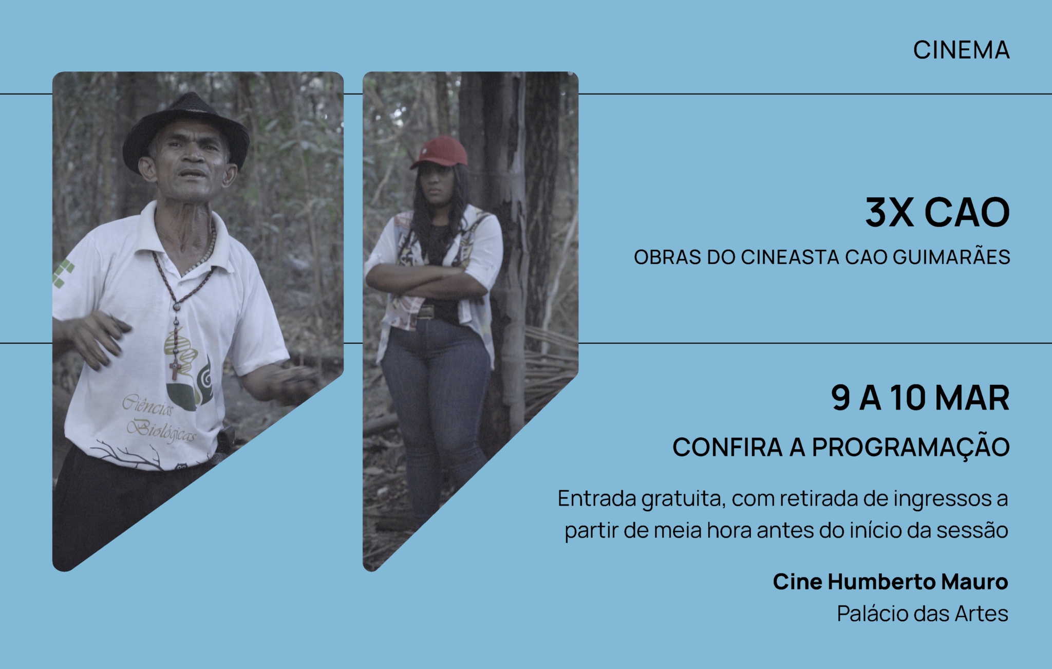 Com mais de 40 anos, o Cine Humberto Mauro concilia retrospectivas clássicas do cinema nacional e mundial à efervescência da produção contemporânea. Com este Norte, será realizada, entre os dias 9 e 10 de março, a mostra “3X Cao”. As sessões destacam as produções do cineasta belo-horizontino Cao Guimarães, reconhecido por transitar entre o cinema e as artes visuais, explorando as sutilezas do cotidiano e revelando a poesia presente em momentos ordinários. Serão exibidas as obras “Santino” (2022), ”Andarilho” (2006) e “O Homem das Multidões” (2013). No dia 9, o diretor participa de um debate com o público, contando seus processos criativos e as temáticas abordadas. Todas as sessões são gratuitas, com retirada de ingressos a partir de meia hora antes do início das sessões.