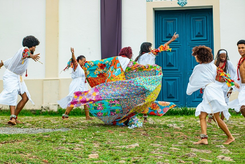 Na dança, corpos se arrastam, giram e se elevam como quem resgata uma memória pulsante que insiste em resistir. Como aponta a sinopse da obra: “É som que procura corpo, é corpo que reverbera som. É a força de uma cultura que insiste em permanecer viva, dançada, cantada e compartilhada.”