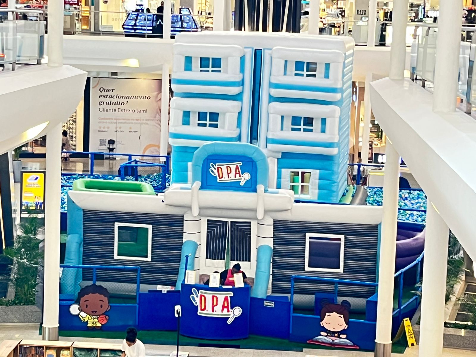 O espaço lúdico convida a garotada a viver uma missão cheia de aventuras e brincadeiras. Com cenários inspirados na famosa história do D.P.A., incluindo um inflável gigante em formato de prédio, o circuito reúne obstáculos e diversas opções de recreação, como piscina de bolinhas, giro radical e pula-pula, proporcionando uma experiência imersiva de mistérios, desafios e muita diversão.