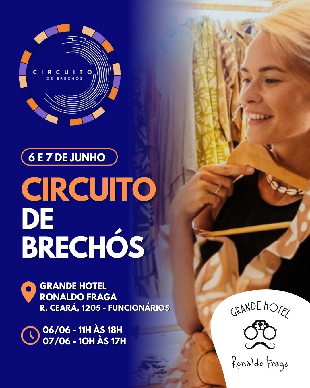 Garimpar roupas e viver uma experiência estética, cultural e sustentável. É isso que te espera no Circuito de Brechós, nos dias 6 e 7 de junho, dentro do icônico e instagramável Grande Hotel Ronaldo Fraga, uma casa histórica totalmente restaurada, que une arquitetura, moda, arte e memória. São brechós autorais e selecionados, com curadoria de roupas femininas, masculinas, plus size, peças vintage, marcas queridinhas, calçados, acessórios e bolsas artesanais. Tudo isso em um espaço que é cenário perfeito pra quem ama moda, fotos lindas, história e, claro, consumo consciente.