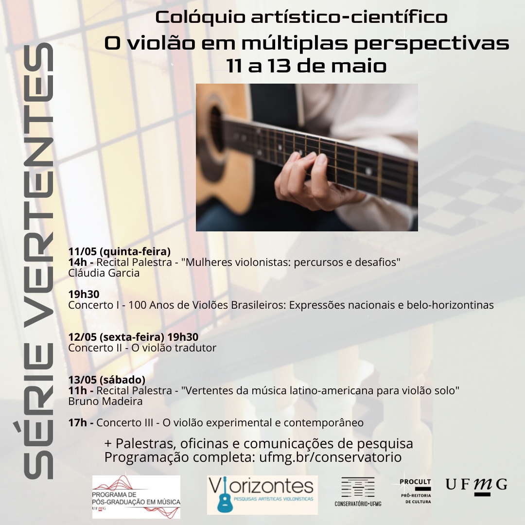 O Colóquio está organizado em palestras, recitais-palestras, concertos temáticos e oficinas. Está previsto uma série de atividades na programação, dentre elas a discussão e desenvolvimento dos projetos de pesquisa em andamento na pós-graduação da UFMG; reflexões conceituais, teóricas e práticas sobre temas relacionados ao violão e a pesquisa artística e pedagógica em torno desse instrumento; promoção de eventos artístico-científicos – públicos – que resultem em troca e difusão de saberes e experiências.