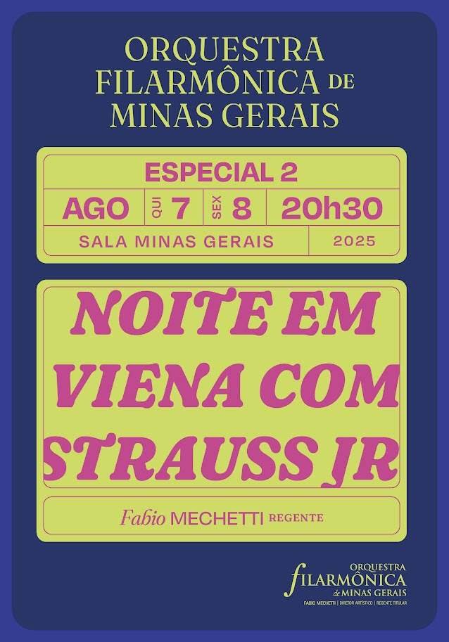 Nos dias 7 e 8 de agosto, a Filarmônica de Minas Gerais celebra as valsas e melodias austríacas de Johann Strauss Jr. no concerto especial “Noite em Viena”. Prepare-se para uma noite repleta de brilho e emoção na Sala Minas Gerais, com regência do maestro Fabio Mechetti!