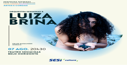 A Orquestra Sesiminas recebe a cantora e compositora Luiza Brina no palco do Teatro Sesiminas, no dia 7 de agosto, para o concerto “Prece”, da série Artes e Cordas.