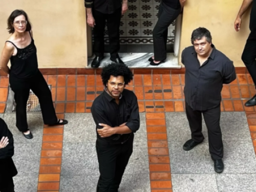 Performance de experimentações sonoras conduzidas por O Grivo.