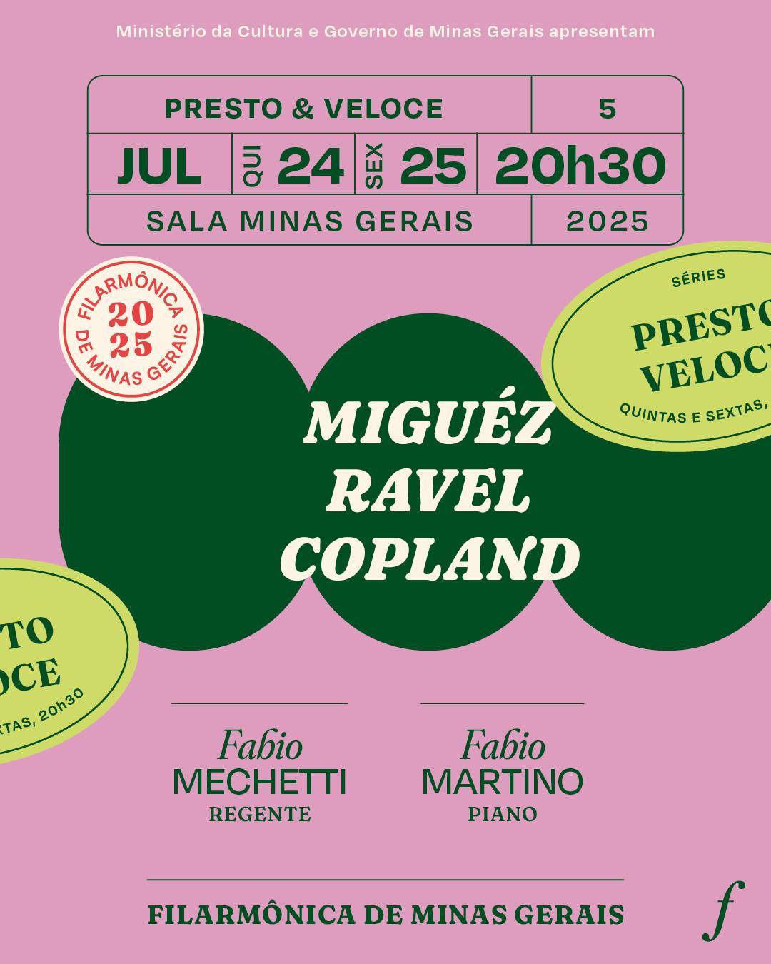 Celebrando três aniversários importantes, a Filarmônica apresenta um dos programas mais diversificados da temporada. Do compositor romântico brasileiro Leopoldo Miguéz, executaremos sua homenagem à Proclamação da República. De Ravel, seu charmoso Concerto para piano, com o jovem pianista brasileiro Fabio Martino. O programa se encerra com a grandiosa Terceira Sinfonia do norte-americano Aaron Copland.