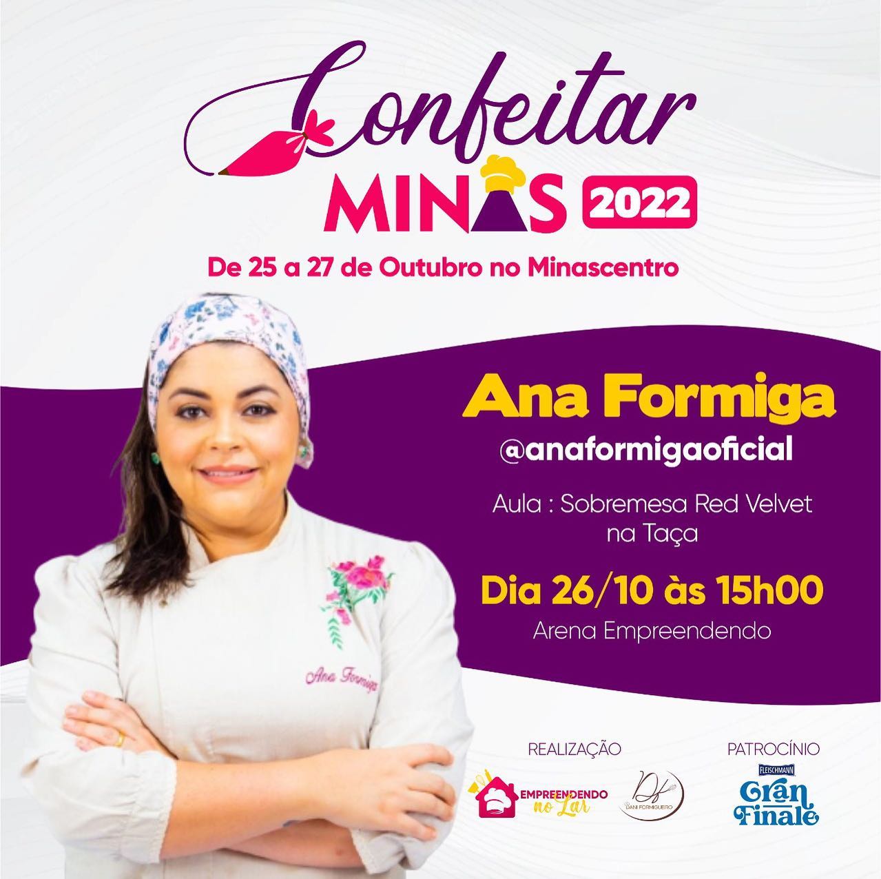 Evento com aulas de confeitaria GRATUITAS com os melhores profissionais do país, sala da Empreendedora(o) com workshops de precificação, fotografia de comida para redes sociais, marketing e vendas e muito mais.