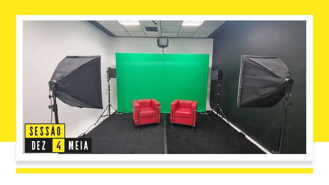 O Estúdio Audiovisual do Sessão Dez4Meia é um espaço novo na cena de Belo Horizonte, com foco em inovação, colaboração e criatividade, compõe o Coworking localizado no Sesc Palladium, no 3º andar da Rua Rio de Janeiro, nº 1046, Centro de Belo Horizonte.