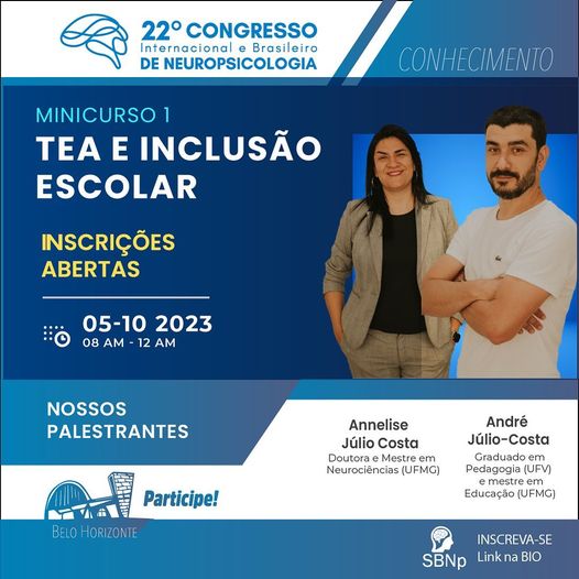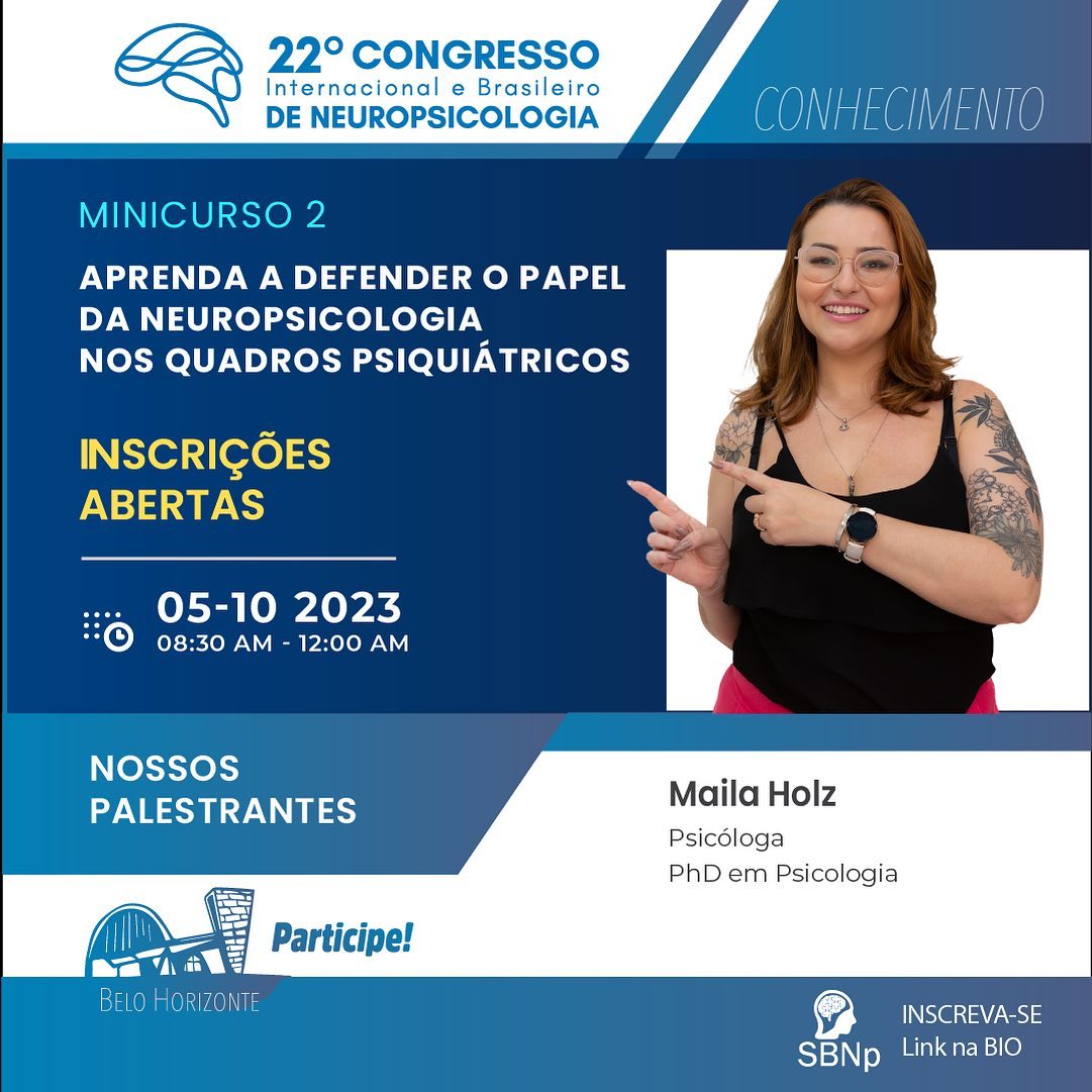Nos dias 5 a 7 de Outubro de 2023 em Belo Horizonte, as maiores referências da Neuropsicologia vão se reunir para discutir todas as atualizações científicas da nossa área. Professores e pesquisadores de referência do Brasil e do mundo estarão reunidos reunidos em um só lugar.