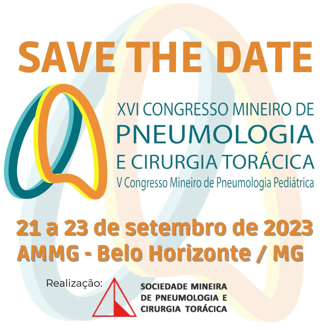 Nos dias 21, 22 e 23 de setembro deste ano, será realizado o XVI Congresso Mineiro de Pneumologia e Cirurgia Torácica e o V Congresso Mineiro de Pneumologia Pediátrica no Centro de Convenções da Associação Médica de Minas Gerais, em Belo Horizonte .