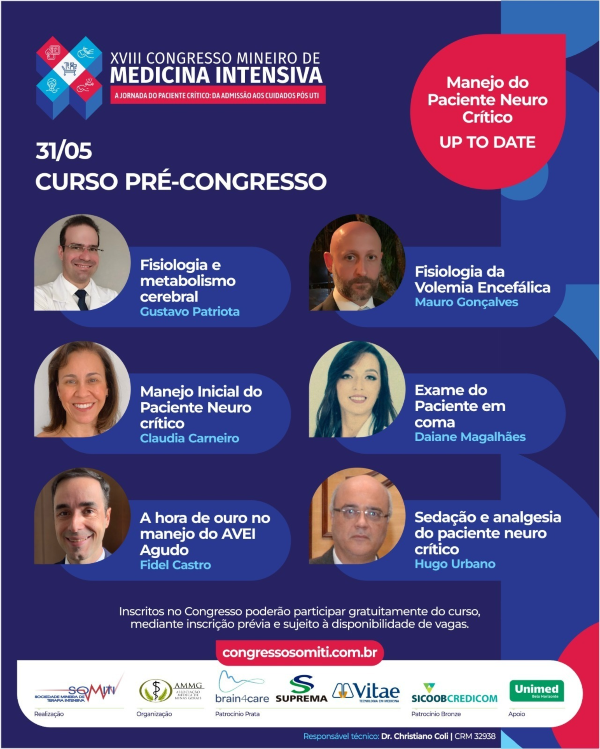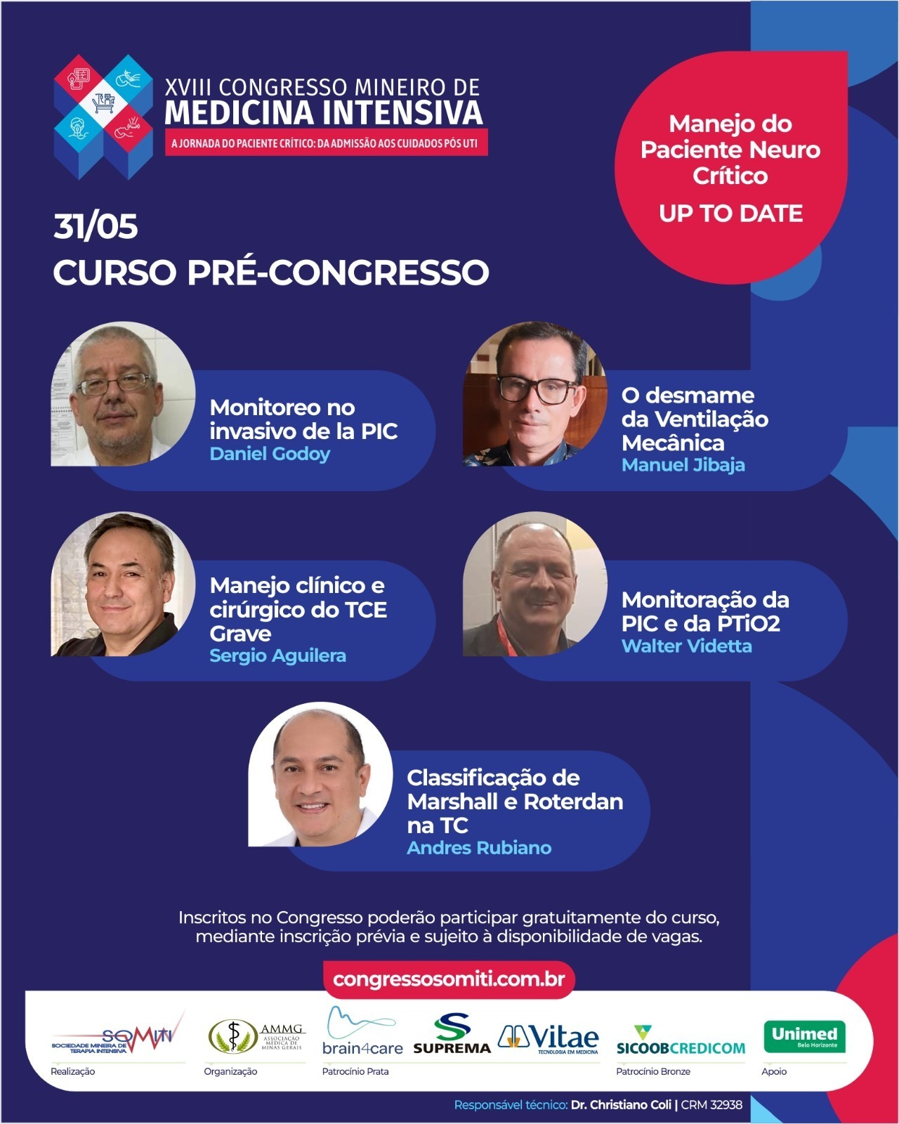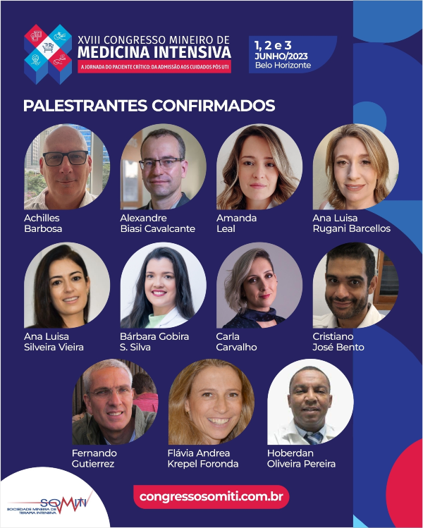 De 1 a 3 de junho de 2023 acontecerá o XVIII Congresso Mineiro de Medicina Intensiva. Um encontro multidisciplinar que debaterá “A jornada do paciente crítico: da admissão aos cuidados pós UTI”. Durante três dias, no Centro de Convenções e Eventos da Associação Médica de Minas Gerais, especialistas trarão à tona a realidade do profissional que atua com pacientes críticos que chegam ao hospital, desde sua admissão no pronto socorro até os cuidados pós UTI.