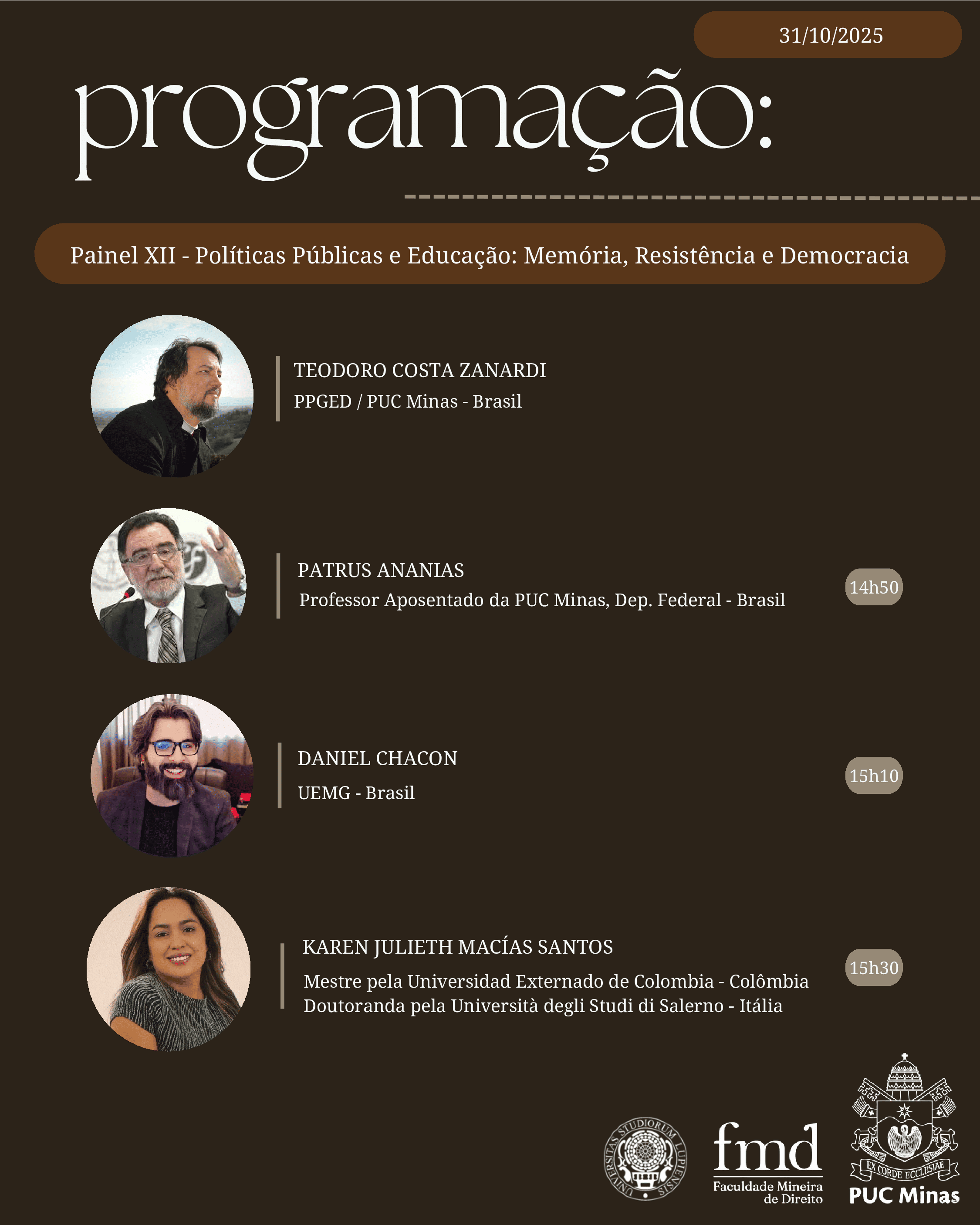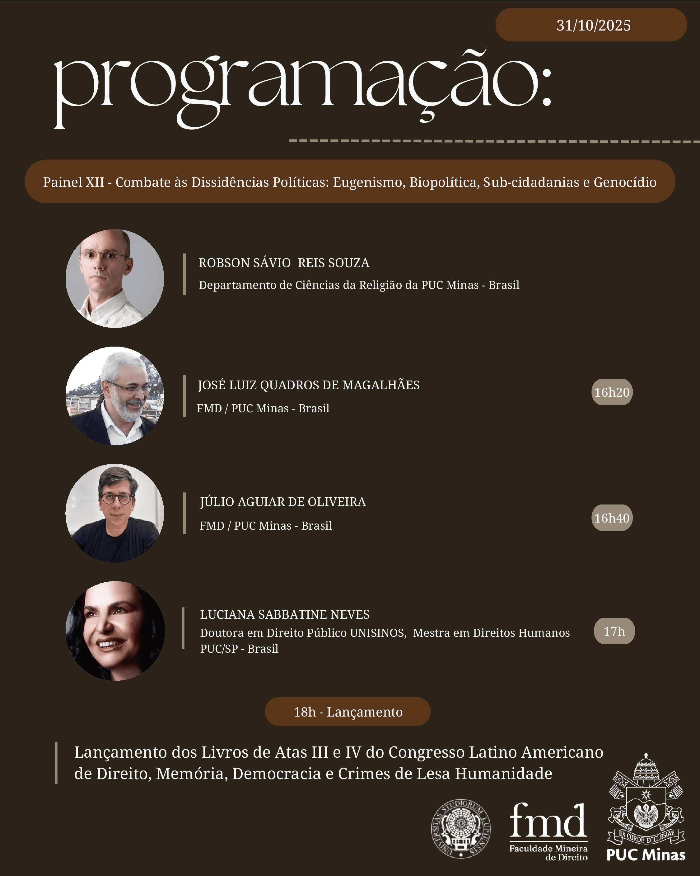 Nos dias 29, 30 e 31 de outubro, acontecerão as conferências do V Congresso Latino Americano de Direito, Memória, Democracia e Crimes de Lesa Humanidade. No dia 1º de novembro, será a vez dos Grupos de Trabalho.