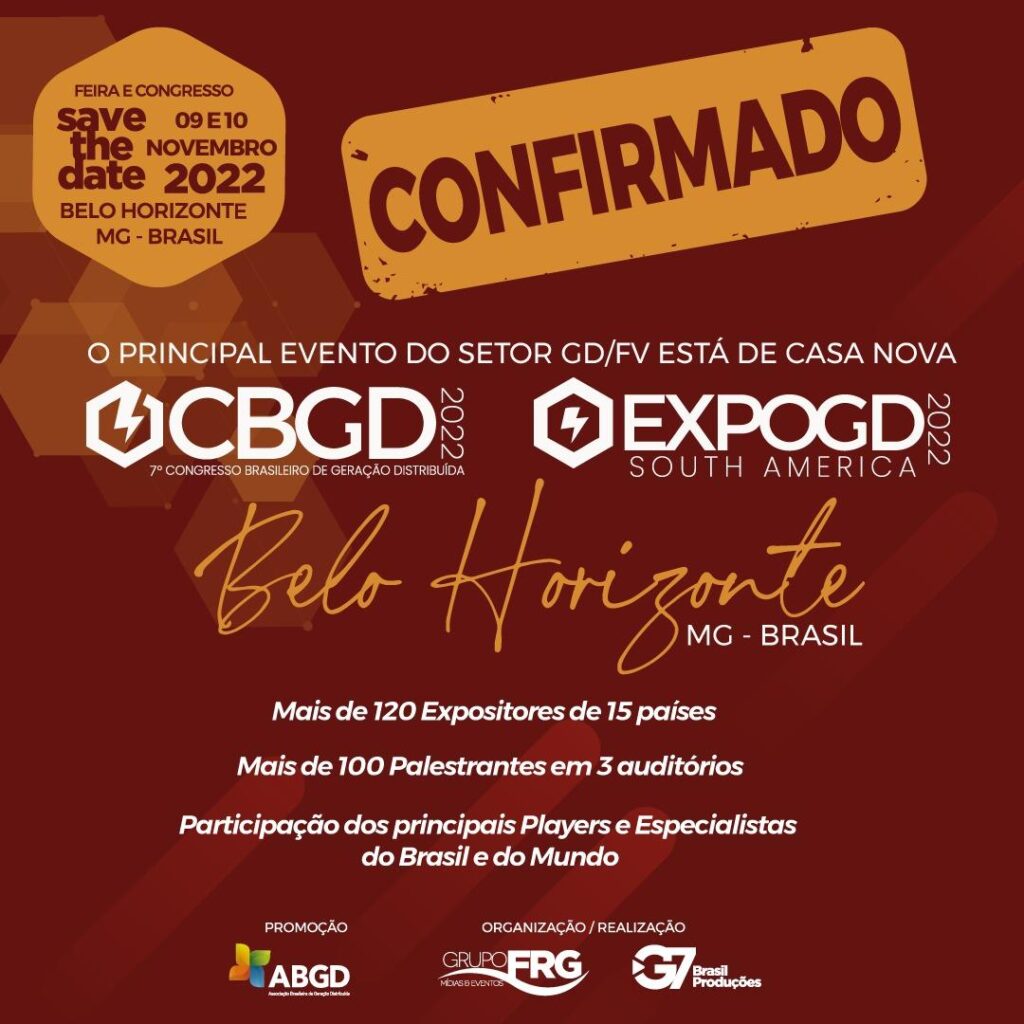 O CBGD - Congresso Brasileiro de Geração Distribuída é um evento anual coordenado e organizado pelo Grupo FRG Mídias & Eventos, que conta com o apoio das principais associações e entidades ligadas ao setor da Geração Distribuída no Brasil, estando já em sua 7ª edição!